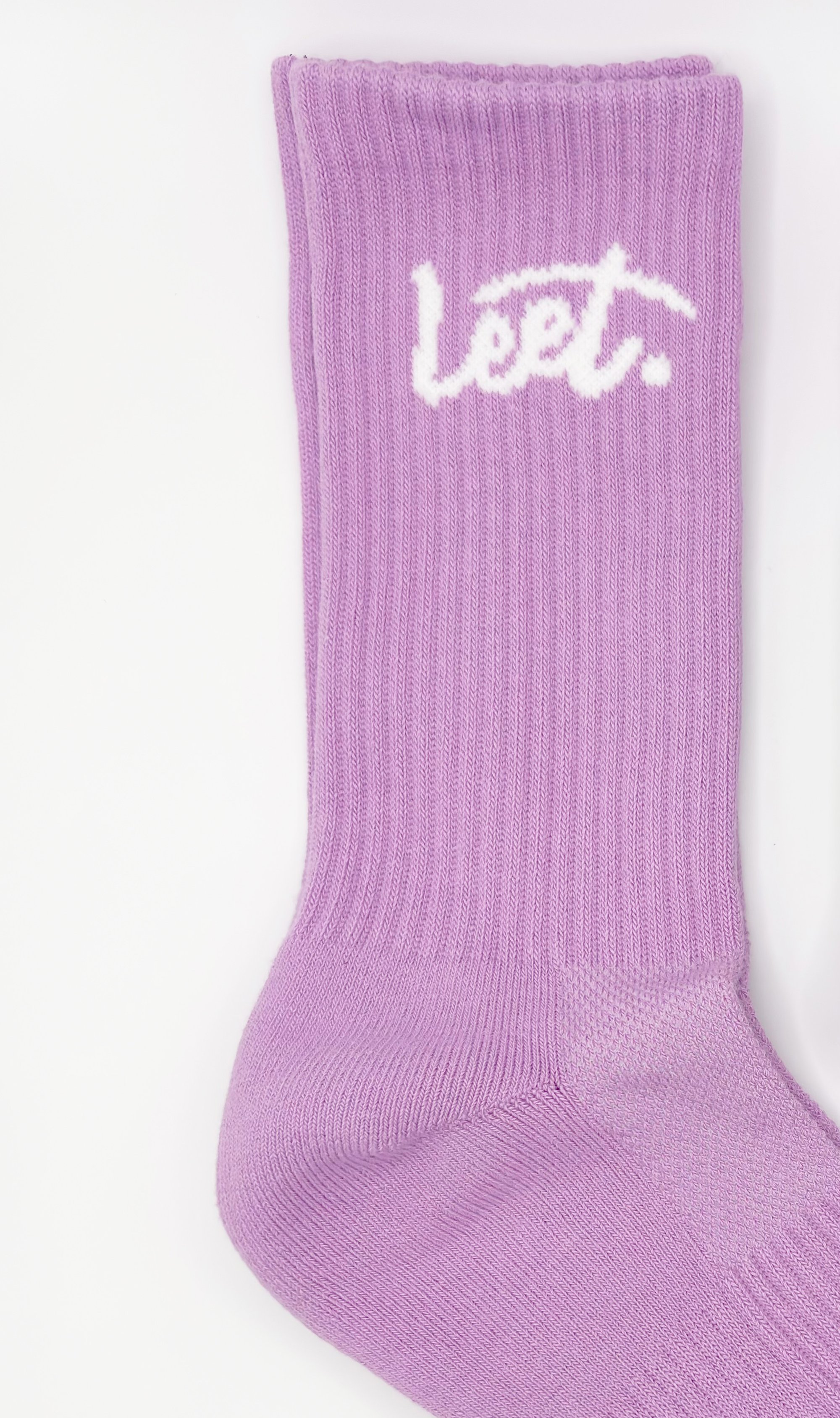Summer never looked this elite with the summer hues Purple sports crew sock sporting the classic Leet. logo in white.
