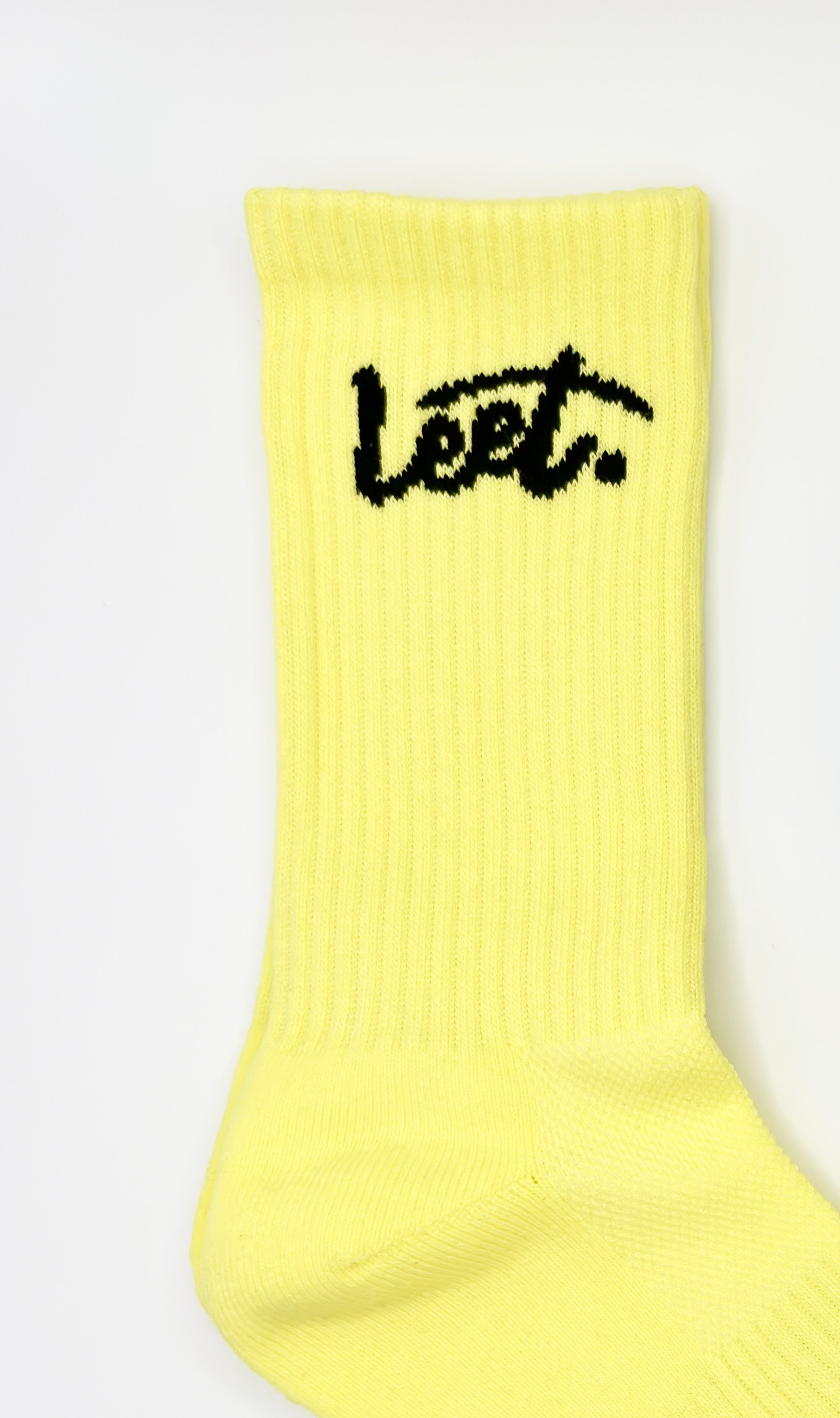 Summer never looked this elite with the summer hues Yellow sports crew sock sporting the classic Leet. logo in black.